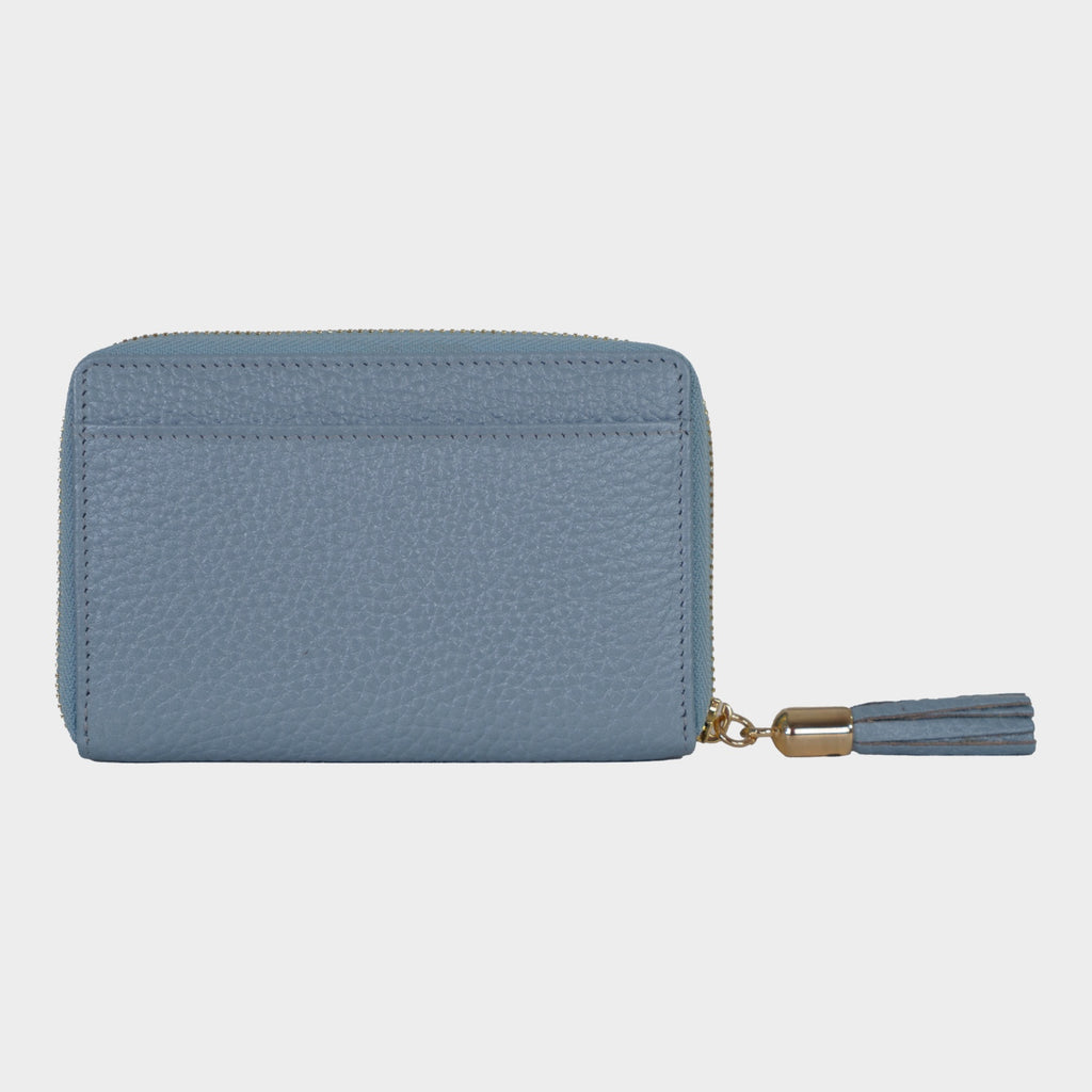 Die RV-Geldbörse ALESSIA vereint feminine Eleganz mit praktischen Funktionen und ist der perfekte Begleiter für die moderne Frau, die Wert auf Stil und Alltagstauglichkeit legt. Hergestellt aus weichem, genarbtem Leder in moderner Metallic-Optik, schimmert sie in kühlem Eisblau. Das klassische Modell überzeugt durch seine handliche Größe und ist dabei ein echter Handschmeichler. Gold-glänzende Metallteile, wie das Logoemblem und der Metall-Reißverschluss, sowie ein formschöner Reißverschluss-Anfasser mit femininer Quaste verleihen der Geldbörse einen edlen und zugleich verspielten Look. Innen sorgt die goldene Logoprägung für einen Hauch von Luxus, während das hochwertige Logo-Jacquard-Futter zusätzlich für Charme sorgt. Die durchdachte Aufteilung bietet ein zweigeteiltes Hauptfach für Münzen und Scheine, sodass alles sicher und ordentlich verstaut werden kann. Vier integrierte Steckfächer bieten Platz für Kreditkarten, Ausweise oder Belege. Ein rückwärtiges Steckfach ermöglicht schnellen Zugriff auf wichtige Dokumente und Karten.