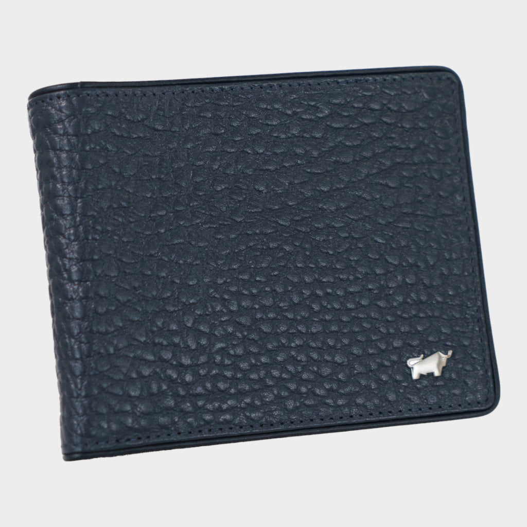 The generously sized BEN wallet impresses with its exceptional organization and refined craftsmanship – perfect for the man who values ​​both style and organization. Made from high-quality, naturally grained dark blue cowhide leather with a fine, all-around black leather piping and a silver-tone logo emblem on the front, it reflects deliberate contrasts. Inside, black leather combined with an anthracite jacquard logo lining creates a sophisticated look. The cleverly structured interior offers ample storage space: A central panel, secured with a snap fastener, opens to the right, revealing five card slots, two slip pockets, and a large, transparent mesh pocket for ID cards or tickets. Below this are seven additional vertically arranged card slots and a slip pocket. A large coin pocket with a flap and snap closure, along with two bill compartments, complete the modern design. Integrated RFID protection reliably safeguards your cards from unauthorized scanning.