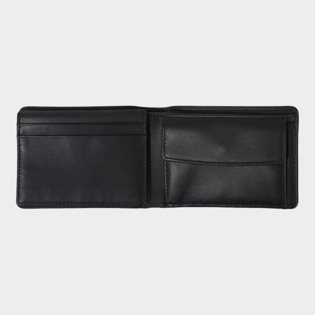 The BEN wallet impresses with its modern design and smart functionality – perfect for the urban man who prefers a handy and slim format. Crafted from high-quality, naturally grained dark blue cowhide leather with fine black smooth leather on the interior and surrounding piping, it captivates with its deliberate interplay of matte and subtly glossy surfaces. The silver-colored logo emblem on the lower right of the front adds an elegant touch. Inside, the anthracite-colored jacquard logo lining underscores the high-quality craftsmanship. The well-thought-out layout offers ample space: A fold-up flap reveals four card slots and a slip pocket; below are four more card slots, two slip pockets, and a transparent mesh pocket for ID cards. A coin pocket with a flap and snap closure, a bill compartment, and two slip pockets provide additional storage. Thanks to integrated RFID protection, cards are reliably protected against data misuse. Compact and functional – this wallet is always a stylish companion.