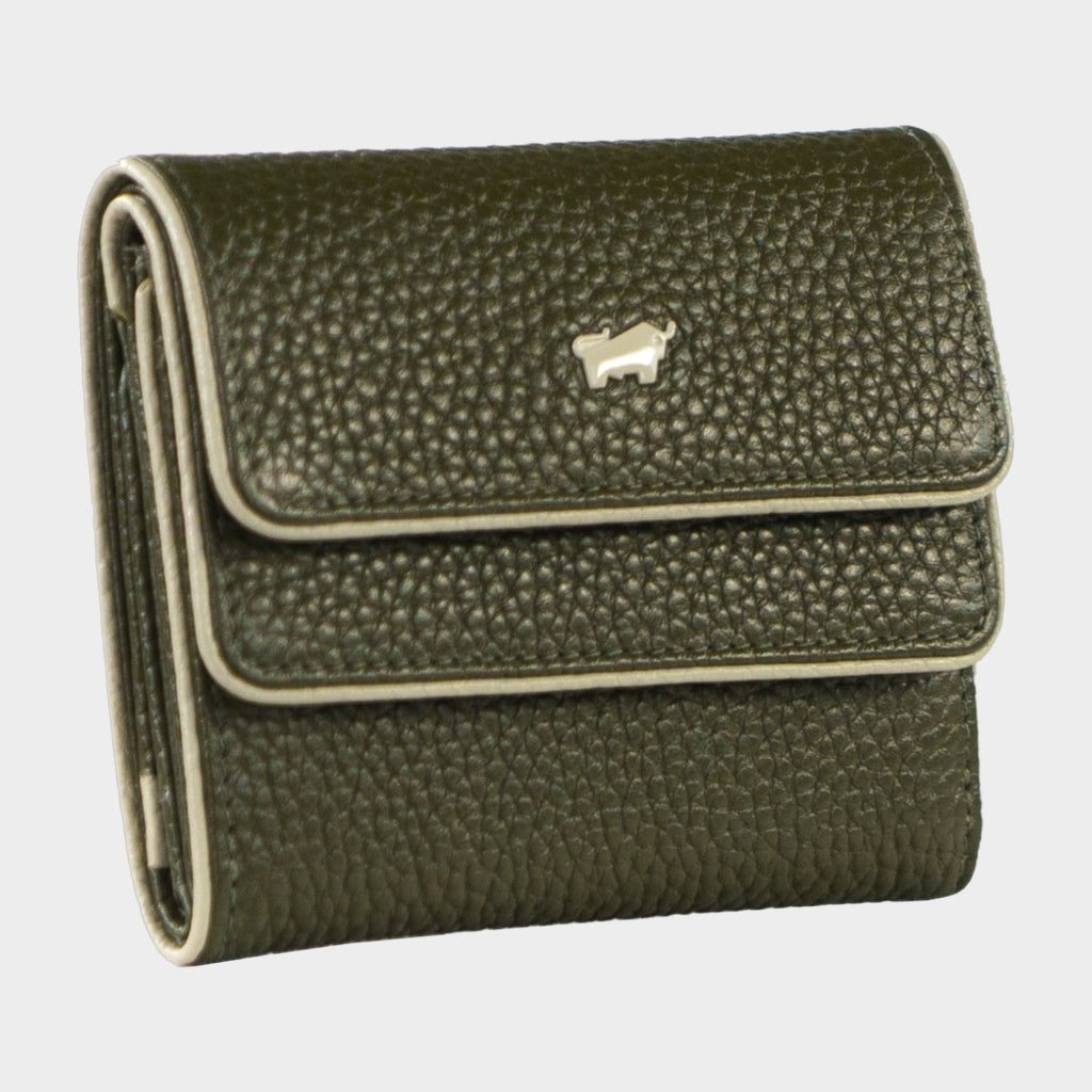 Die ASTI-Geldbörse in dunklem Grün punktet durch ihr handliches Format und vereint Funktionalität und Stil auf perfekte Weise. Gefertigt aus hochwertigem feingenarbtem Leder, überrascht sie mit ihrem modisch-jungen Look in eleganter Bi-Color Optik. Der doppelte Überschlag mit dem farbig abgesetzten, emaillierten Logo Emblem in Mistelgrün, sowie die ebenfalls kontrastierende, feine Paspelierung betonen das moderne Design. Die Ausstattung mit sandfarbenem Logo-Innenfutter überzeugt durch vielseitige Organisationsmöglichkeiten: Der obere Überschlag mit Druckknopf-Verschluss bietet Zugriff auf ein Scheinfach und vier Kartenfächer, wovon eines auch in Mistelgrün gehalten ist. Unter dem zweiten Überschlag befindet sich ein weiteres Kartenfach, sowie ein Münzfach. Ergänzt wird die Funktionalität durch ein praktisches Steckfach auf der Rückseite, das schnellen Zugriff auf wichtige Essentials ermöglicht. Dank integriertem RFID-Schutz sind Ihre Karten vor unbefugtem Zugriff geschützt. Das kompakte Format liegt angenehm in der Hand, passt in jede Handtasche und setzt mit seiner farblichen Raffinesse ein stilvolles Statement im Alltag.
