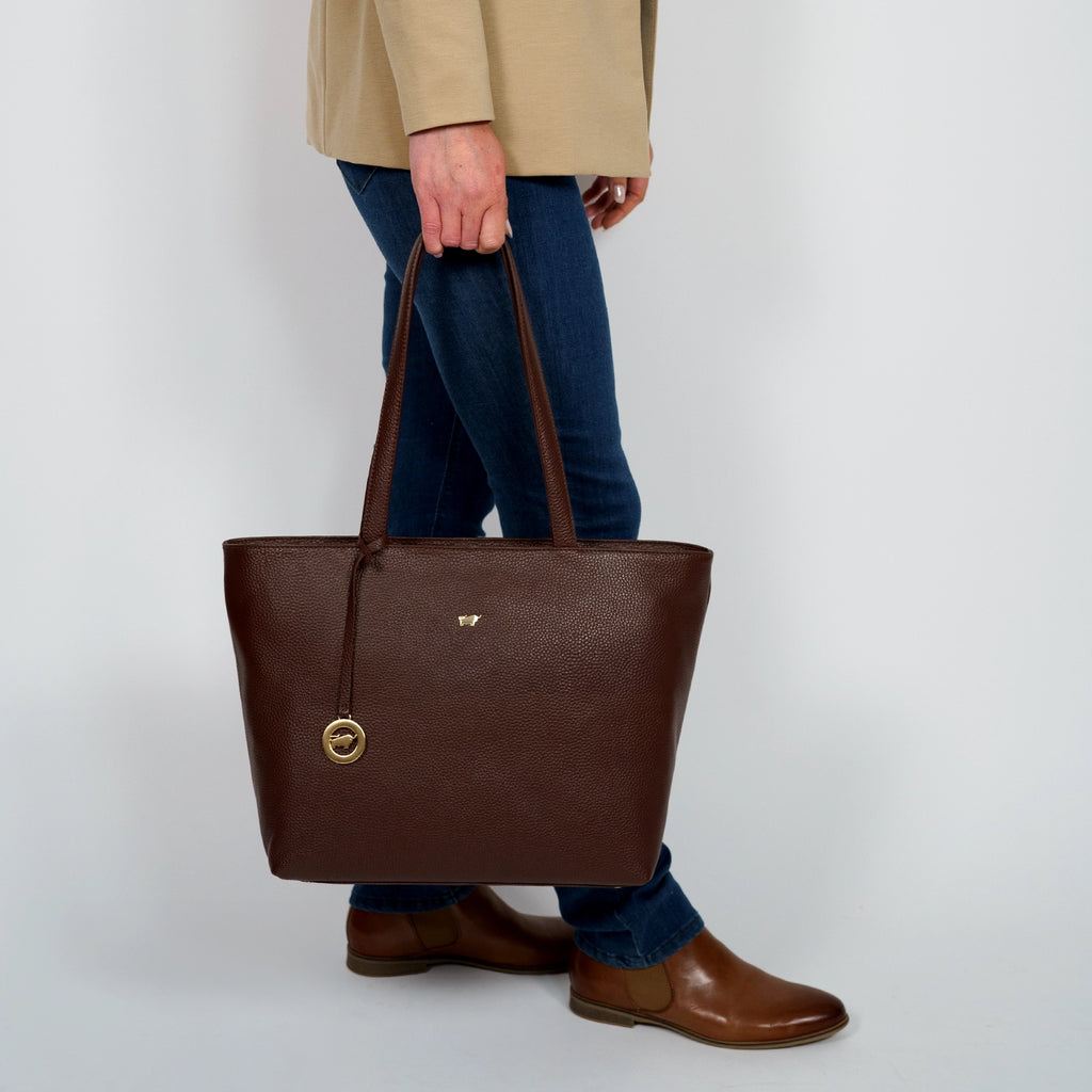 Wie der Name der Tasche schon sagt, ist der BRAUN BÜFFEL HANNA Shopper die ideale Shoppingbegleitung auf Städtetrips, durch seine Größe zeichnet er sich aber auch als Arbeitstasche optimal aus. Dank der Aufteilung im Inneren finden Gegenstände im Alltäglichen Gebrauch wie Handy, Börse oder Trinkflasche ihren Platz. Die Tasche hat drei große Fächer, wobei eins separat durch einen Reißverschluss zu bedienen ist. Auf der Rückseite des Shoppers befindet sich ein weiteres Reißverschlussfach. Der Shopper trägt sich locker über der Schulter oder dem Arm und bietet dadurch ein angenehmes Traggefühl. Das genarbte Rindleder verzeiht auch mal ein Kratzer, was die Tasche zu einem Optimalen Begleiter macht für jeden Tagen.