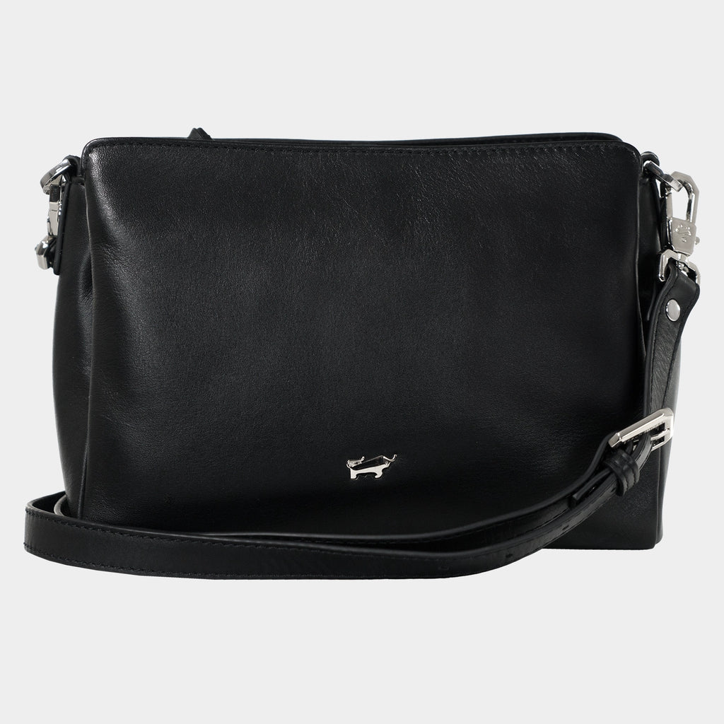 Diese Umhängetasche mit Reißverschluss aus der HANNA CLASSIC-Serie präsentiert sich als zeitlos-eleganter und vielseitiger Begleiter für den Alltag. Gefertigt aus hochwertigem, glattem Rindleder überzeugt sie in edlem Tiefschwarz mit seidigem Glanz. Dezente silberfarbene Akzente, wie das feine Logo-Emblem, verleihen der Tasche eine klassische, luxuriöse Note. Die durchdachte Innenaufteilung mit drei Kammern bietet ausreichend Platz für Smartphone, Geldbörse und weitere Essentials. Zusätzliche Steckfächer für Karten sowie ein integriertes Reißverschlussfach sorgen für Ordnung und sicheren Stauraum. Ein weiteres Reißverschlussfach auf der Rückseite ermöglicht schnellen Zugriff auf das Wichtigste. Der verstellbare und abnehmbare Tragegurt bietet flexible Tragemöglichkeiten und unterstreicht die funktionale Eleganz der Tasche.