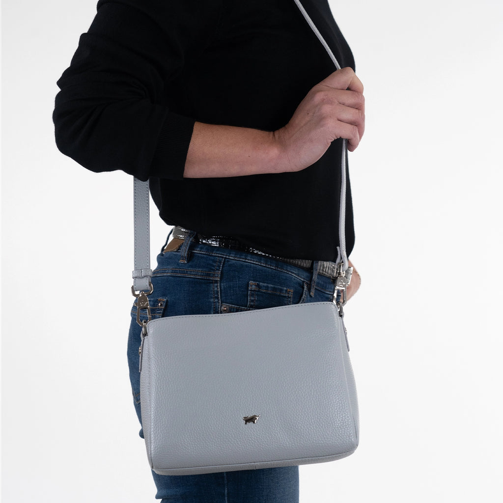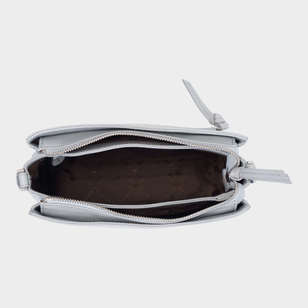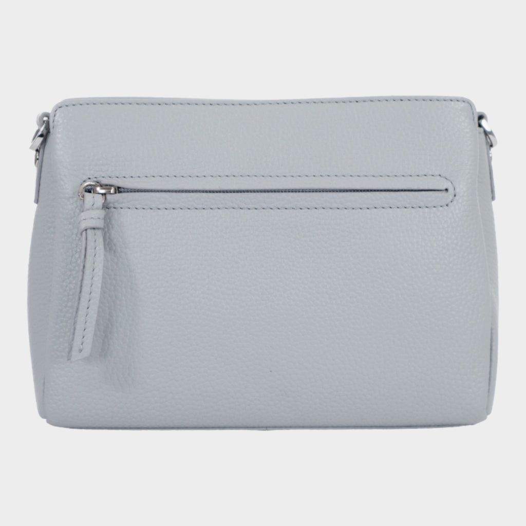 Die HANNA-Umhängetasche mit Reißverschluss aus hochwertigem, genarbtem Leder in weich-pudrigem Grau ist ein sportlicher und vielseitiger Begleiter für den Alltag. Die silberfarbenen Akzente, wie der solide Karabinerhaken und das dezente Logo-Emblem verleihen der Tasche eine edle Note. Mit einer Innenaufteilung gegliedert in 3 Kammern bietet sie ausreichend Platz für Smartphone, Geldbörse und weitere Essentials. Zudem verfügt die Tasche über praktische Steckfächer für Karten sowie ein integriertes Reißverschlussfach für wertvolle Gegenstände. Ein weiteres praktisches Reißverschlussfach auf der Rückseite ermöglicht den direkten Zugriff auf das Wichtigste. Der verstellbare, abnehmbare Tragegurt ermöglicht eine individuelle Anpassung.