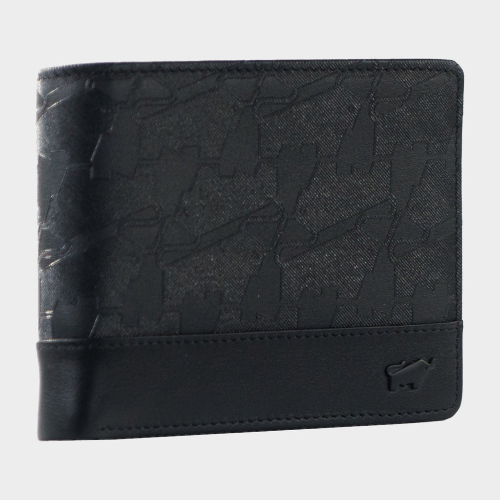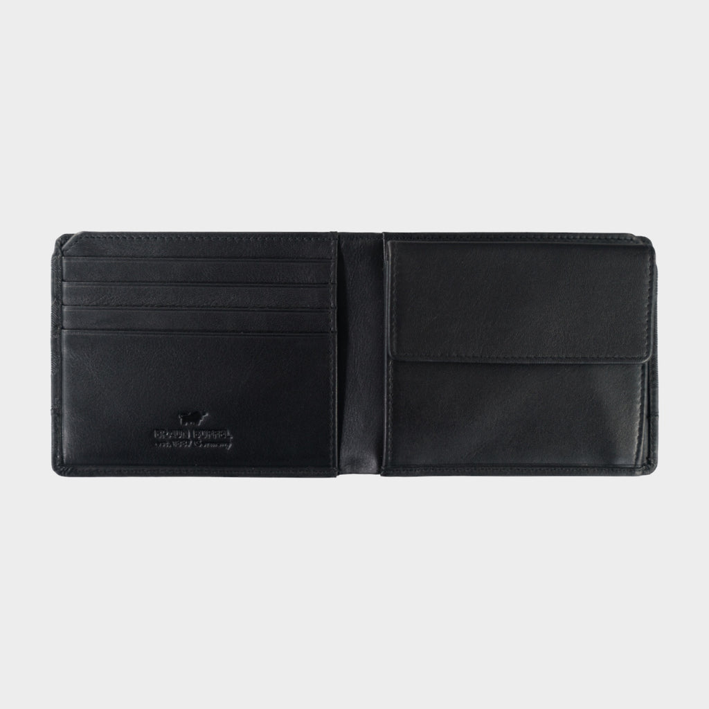 Die LEON Herrengeldbörse in kompaktem Format vereint funktionale Ausstattung mit modernem Design. Gefertigt aus hochwertigem deutschem Rindleder in klassischem Schwarz, zeigt sie einen digitalen Allover-Logoprint aus toskanischer Handwerkskunst, der sich elegant von der Front auf die Rückseite zieht. Der feinnarbige Besatz mit seidigem Glanz verleiht der Börse eine luxuriöse Haptik, während das schwarz-matte Büffel-Logometallteil moderne Akzente setzt. Im Inneren überzeugt die Geldbörse mit einem anthrazitfarbenen Logofutter, einer dezenten Logoprägung und mit ihrer durchdachten Aufteilung: zwei Scheinfächer, vier Kartenfächer sowie drei zusätzliche, versteckte Kartenfächer im vorderen Geldscheinfach bieten viel Stauraum. Ein Münzfach mit Überschlag und Druckknopfverschluss verstaut Münzen sicher und drei weitere Steckfächer für Belege und Tickets vervollkommnen das Innenleben. Der integrierte RFID-Schutz sorgt für höchste Sicherheit und macht die Börse zu einem ebenso stilvollen wie zuverlässigen Begleiter für den Alltag.