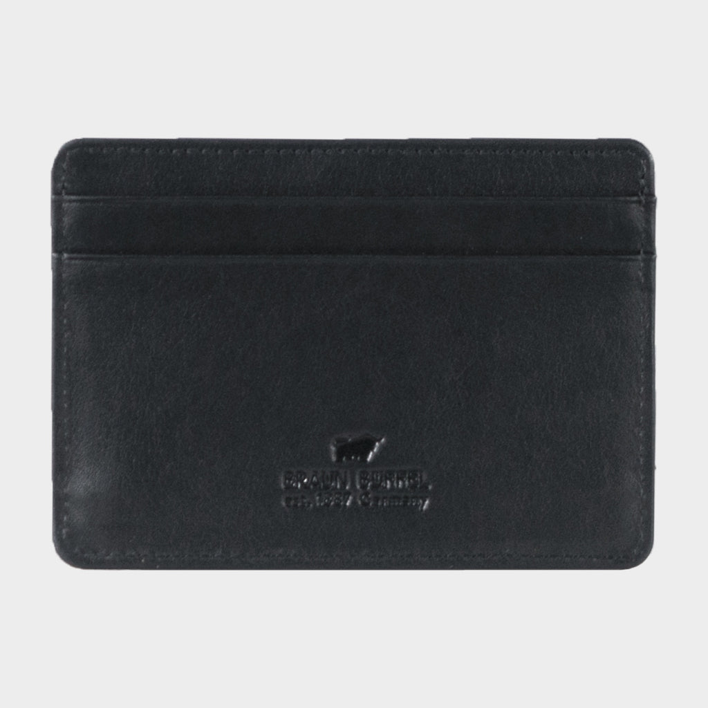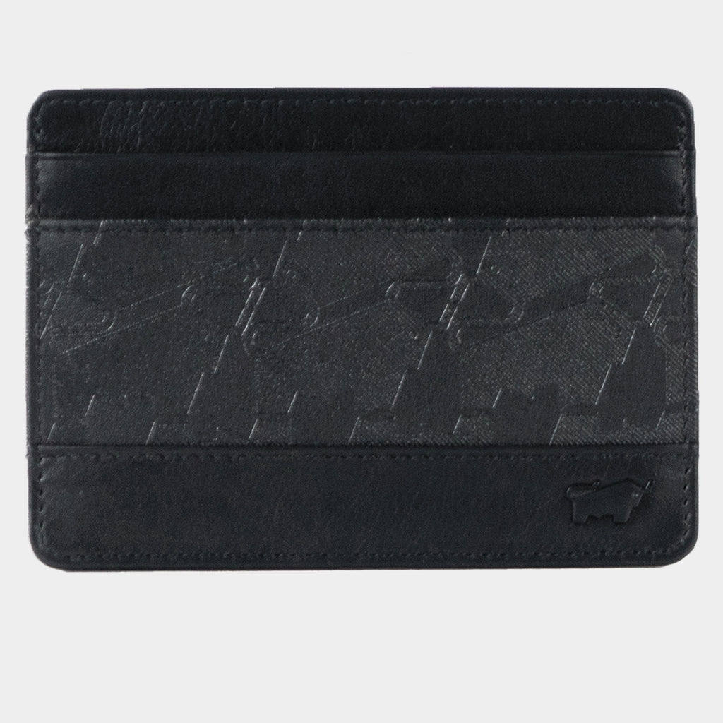 Das LEON Kartenetui überzeugt durch sein modernes, geradliniges Design und durchdachte Funktionalität. Gefertigt aus hochwertigem deutschem Rindleder mit einem digitalen Allover-Logoprint aus einer etablierten toskanischen Druckwerkstatt, ist es in klassischem Schwarz gehalten. Der bedruckte Mittelstreifen setzt auf der Front einen stilvollen Akzent und unterstreicht die moderne Linienführung. Das schwarz-matte Büffel-Logometallteil auf der Front, eine dezente Logoprägung auf der Rückseite und das anthrazitfarbene Logofutter runden das elegante Erscheinungsbild ab, während der feinnarbige Besatz mit seidigem Glanz dem Etui eine luxuriöse Haptik verleiht. Mit zwei Kartenfächern auf der Vorderseite, zwei weiteren auf der Rückseite sowie einem mittleren Steckfach bietet das Etui eine übersichtliche und platzsparende Organisation für Karten und Belege. Der integrierte RFID-Schutz macht das Kartenetui zu einem sicheren Begleiter für den Alltag.
