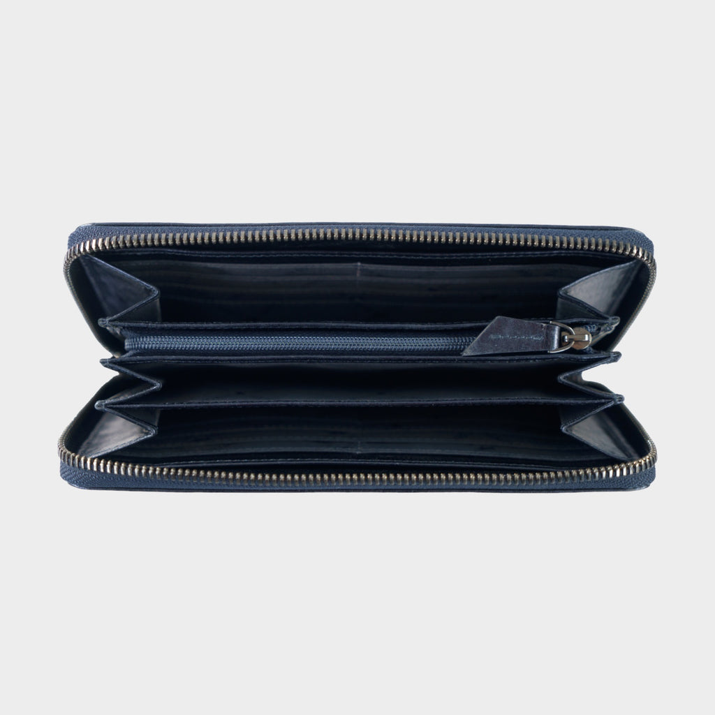 Die RUBY Reißverschluss-Börse überzeugt in länglichem Format mit durchdachter Funktion und modernem Look. Gefertigt aus weichem, glattem Rindleder mit Metallic-Effekt in elegantem Blau, besticht sie durch ihre puristische, gradlinige Optik ohne sichtbare Außennähte. Hochwertige Details wie das glänzende anthrazitfarbene Metalllogo und das hochwertige Logo-Jacquard-Futter verleihen ihr eine luxuriöse Note. Mit Reißverschlussöffnung bietet sie eine praktische Innenaufteilung: drei Hauptfächer, zwei seitliche Steckfächer, ein sicheres Reißverschluss-Münzfach, achtzehn Kartenfächer sowie ein rückwärtiges Steckfach für schnellen Zugriff sorgen für viel Stauraum. Der integrierte RFID-Schutz bewahrt Ihre Karten zuverlässig vor unbefugtem Auslesen. Der formschöne Reißverschluss-Anfasser sorgt für ein angenehmes Handling. Eine stilvolle Geldbörse für Damen, die Eleganz und Funktionalität im Alltag und am Abend schätzen.