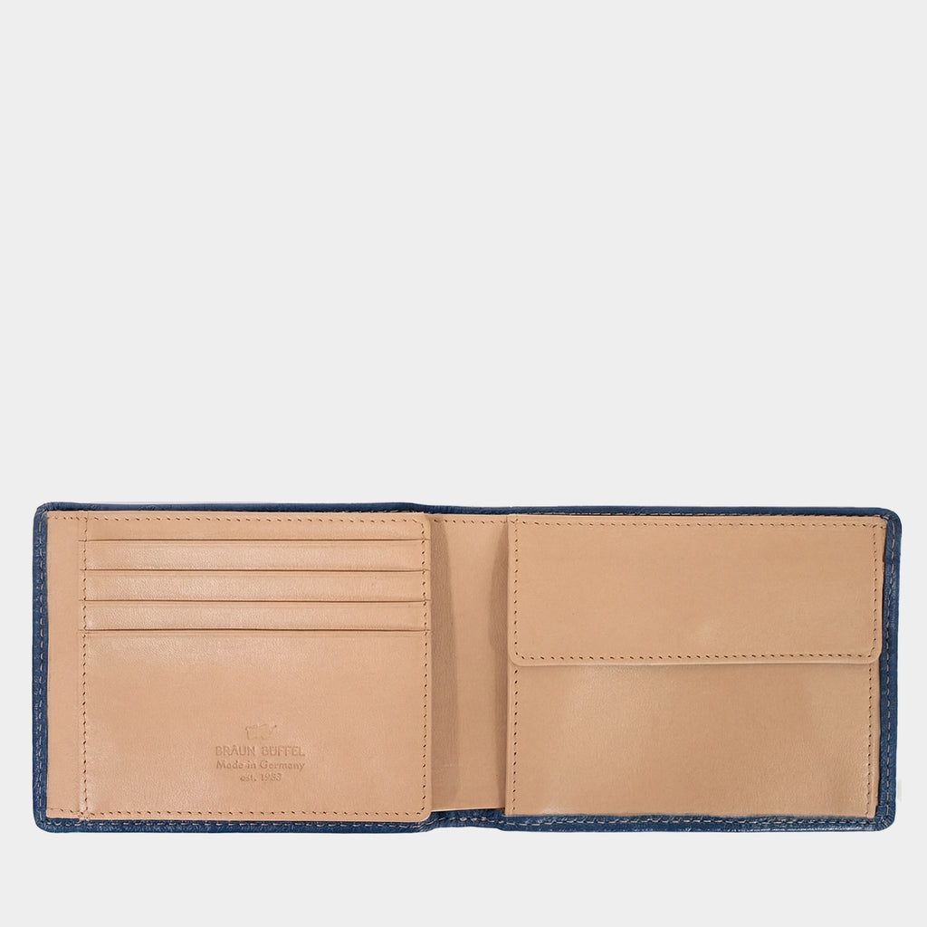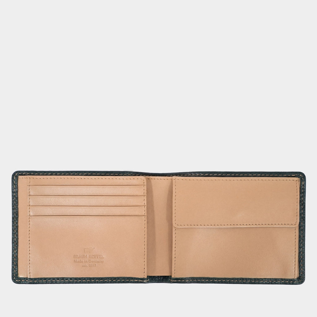Die Geldbörse aus der Toni-Kollektion vereint edle Materialien, deutsche Handwerkskunst und ein durchdachtes Organisationskonzept im praktischen Querformat. Die Außenseite ist aus natürlich genarbtem, weichem Hirschleder gefertigt und verleiht der Börse ihre luxuriöse Haptik sowie den markanten, zeitlosen Look. Im Inneren setzt sandfarbenes, seidiges Rindernappaleder einen harmonischen, stilvollen Kontrast, der den hochwertigen Charakter unterstreicht. Die vielseitige Innenaufteilung bietet großzügigen Stauraum: Ein Münzfach mit Überschlag, vier Kartenfächer auf der seitlich aufklappbaren Lasche, ein geräumiges transparentes Netzfach für Dokumente oder Fotos, sowie vier weitere Kartenfächer ermöglichen eine übersichtliche Sortierung. Vier zusätzliche Steckfächer schaffen weiteren Stauraum, während zwei Scheinfächer Platz für Banknoten bieten und eine optimale Organisation im Alltag gewährleisten. Das sandfarbene Logo-Jacquard-Futter setzt dabei einen exklusiven Akzent. Die präzise gesetzte helle Kontrastnaht hebt die feine handwerkliche Verarbeitung hervor, während das moderne Logo-Emblem in dunkelgrau auf der Vorderseite einen maskulinen, zeitgemäßen Akzent setzt. Eine anspruchsvoll gefertigte Premium-Geldbörse – meisterlich hergestellt von erfahrenen Feintäschnern an unserem Standort in Kirn.