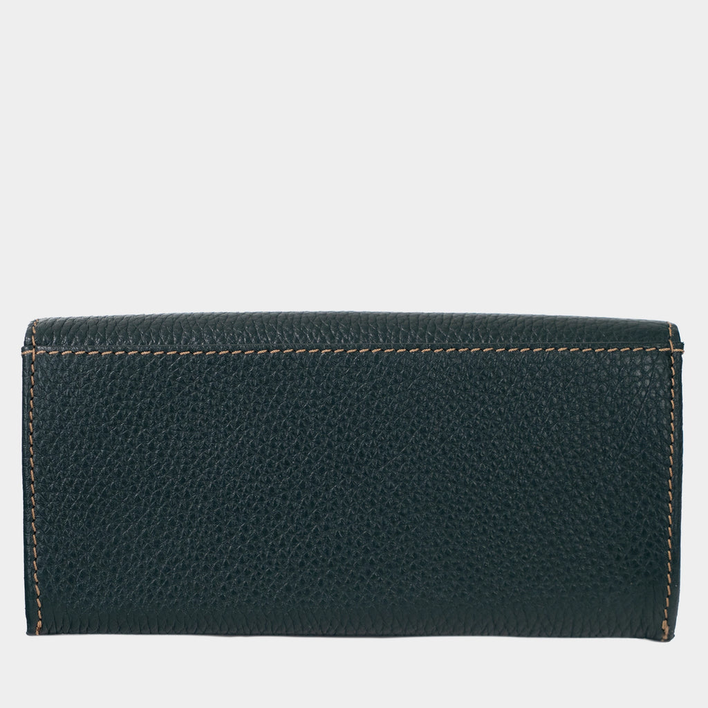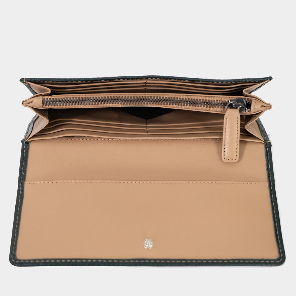 Diese große Geldbörse aus der Toni-Kollektion vereint edle Materialien, deutsche Handwerkskunst und ein vielseitiges Organisationskonzept im länglichen Querformat mit Überschlag. Gefertigt aus natürlich genarbtem, weichem Hirschleder zeigt sie eine hochwertige, maskulin-elegante Ausstrahlung und strahlt luxuriöse Wertigkeit aus. Im Inneren setzt das sandfarbene, seidige Rindernappaleder einen harmonischen Kontrast, der den exklusiven Charakter der Kollektion unterstreicht. Die durchdachte Aufteilung bietet großzügige Organisationsmöglichkeiten: Die Mittelwand verfügt über ein integriertes Reißverschlussfach für Münzgeld und sorgt für sicheren Stauraum. Zwei Scheinfächer mit jeweils sechs Kartenfächern und einem zusätzlichen Steckfach ermöglichen eine klare Übersicht. Ein weiteres Steckfach unter dem Überschlag schafft zusätzlichen Platz für Belege. Das sandfarbene Logo-Jacquard-Futter, die präzise gesetzte helle Kontrastnaht und das moderne Logo-Emblem in dunkelgrau verleihen der Börse ihren edlen, handwerklichen Charakter. Eine großzügig gestaltete Premium-Geldbörse – meisterlich gefertigt von unseren erfahrenen Feintäschnern in Kirn.